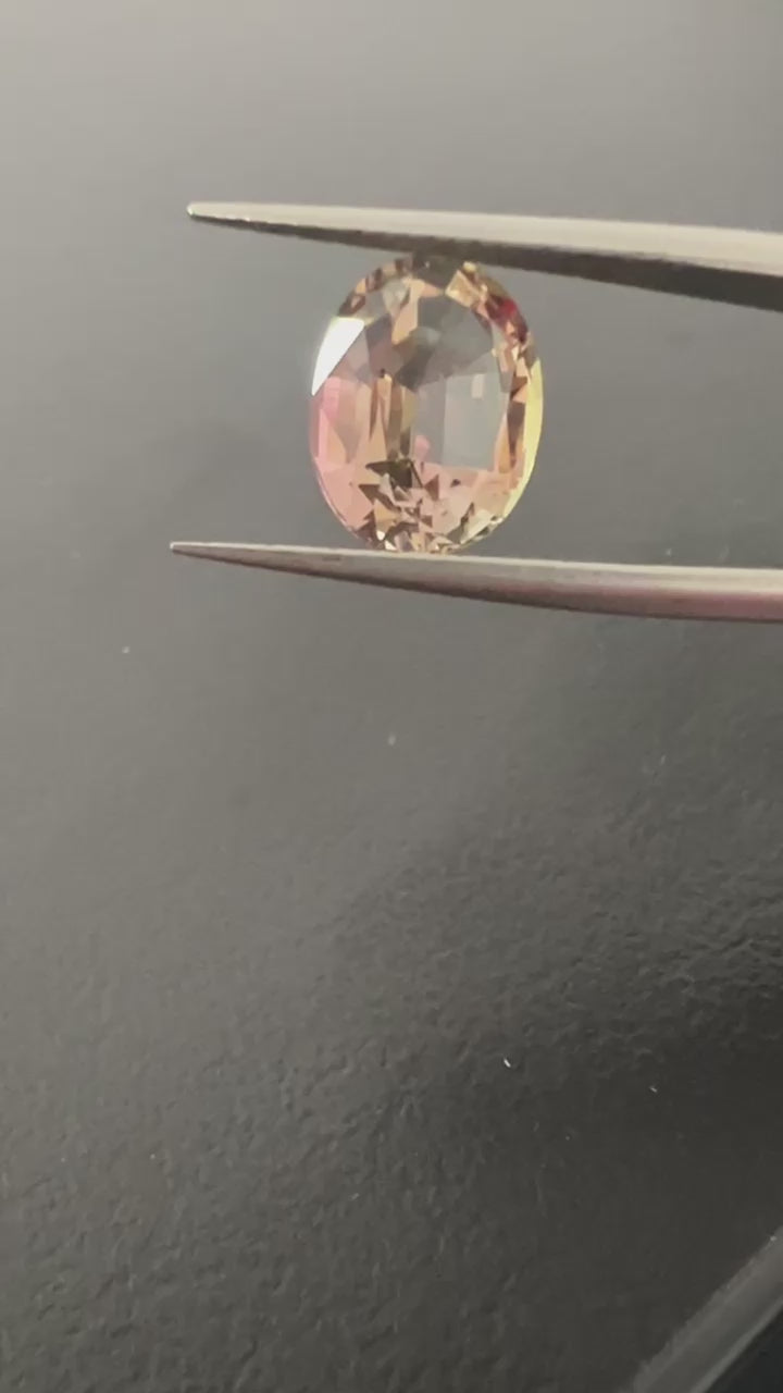 3.98 ct Oval Cut Golden Tourmaline with flashes of pink and green. This is a stunning natural coloured gemstone.